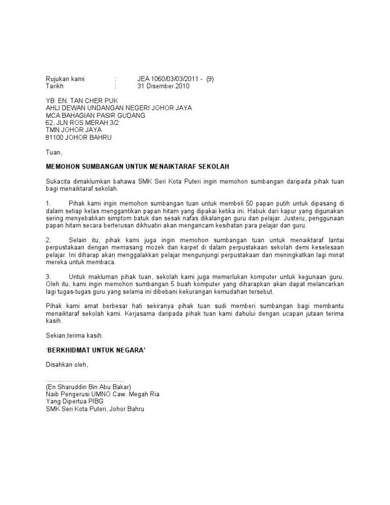 P38 21700 kuala berang hulu terengganu terengganu yang berhormat, memohon sumbangan untuk pibg sekolah kebangsaan tapah. Berikut di bawah ini adalah beberapa contoh surat permohonan dana yang bisa anda gunakan untuk mengajukan bantuan dana dari orang lain atau . Yuk, pelajari contoh surat permohonan bantuan dana yang baik dan benar berikut ini!